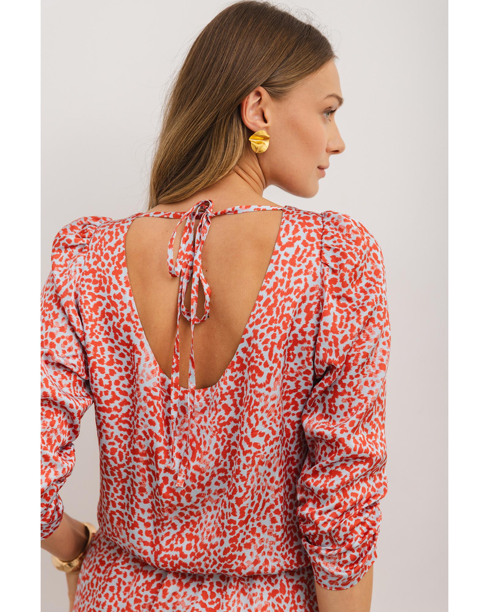Tomato Red Leopard Print Long Sleeve Hollowed Back Split Mini Dress – XL