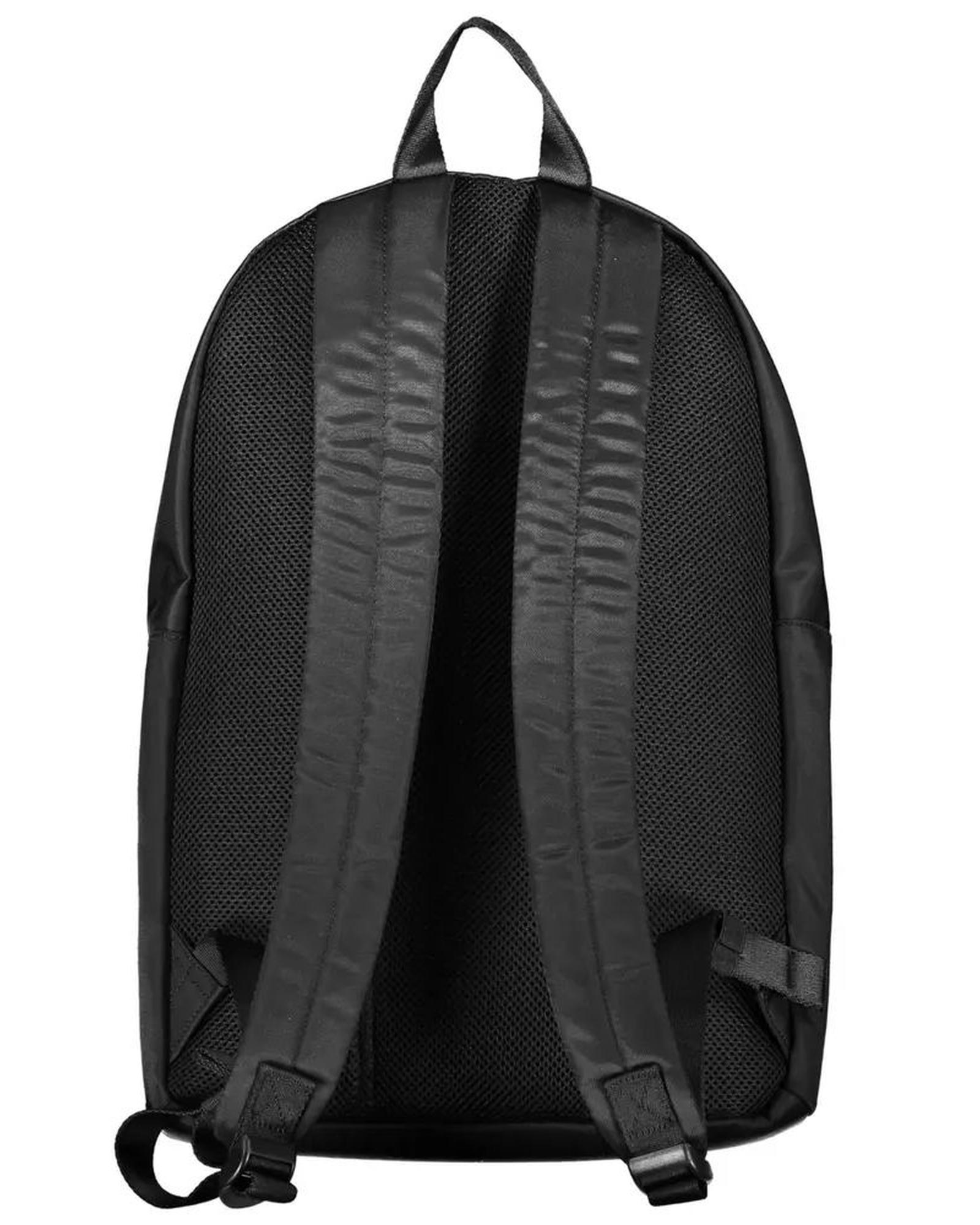 - Black polyester backpack