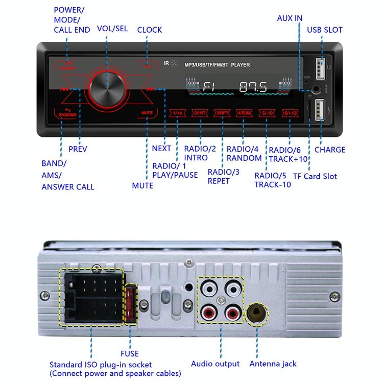Touch Car Bluetooth Speakerphone With Mp3 Player Colourful Lights And Radio – Compatible With Double U Disk – A2818