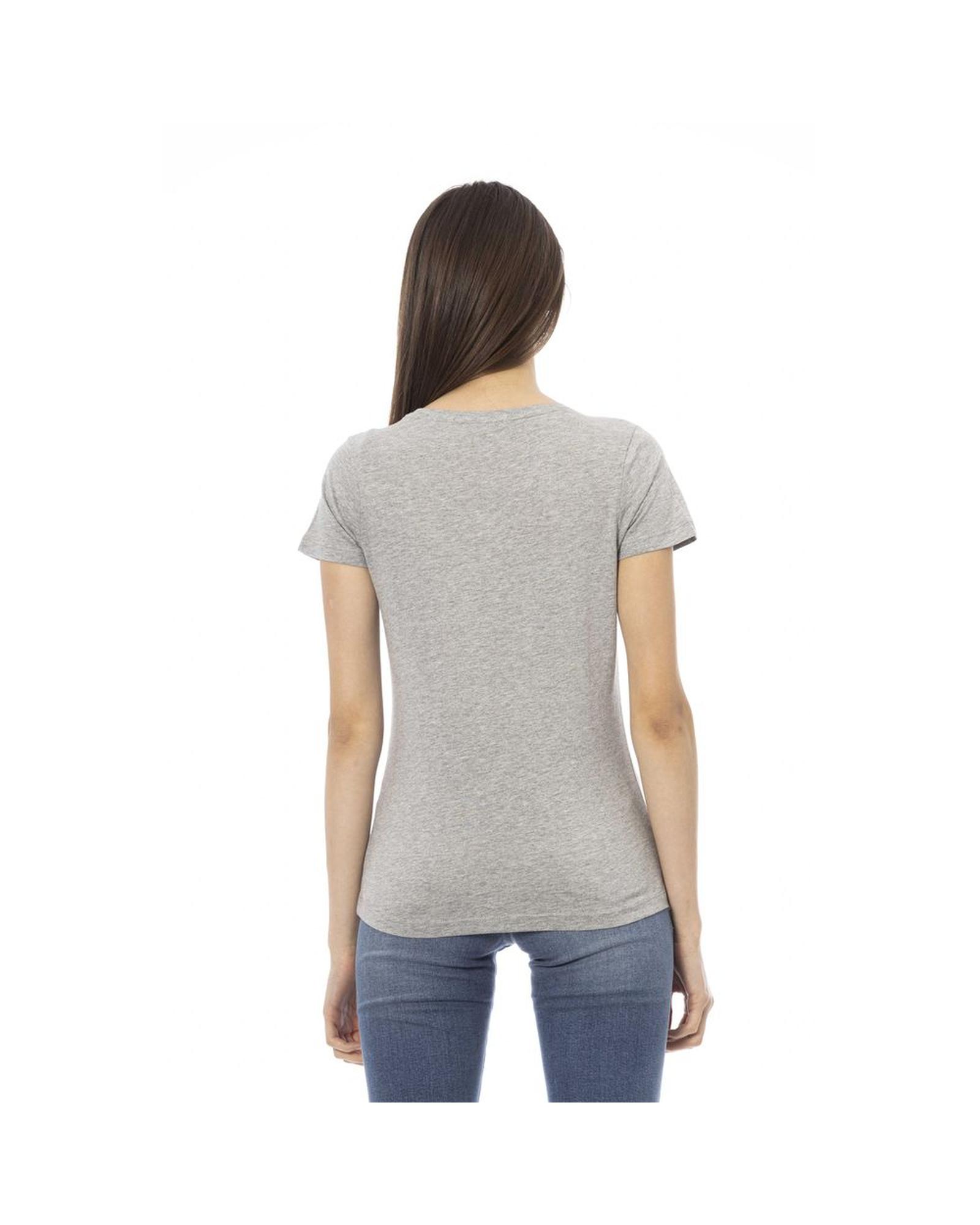 Trussardi Action Women's Elegant Gray V-Neck Tee with Chic Print - S