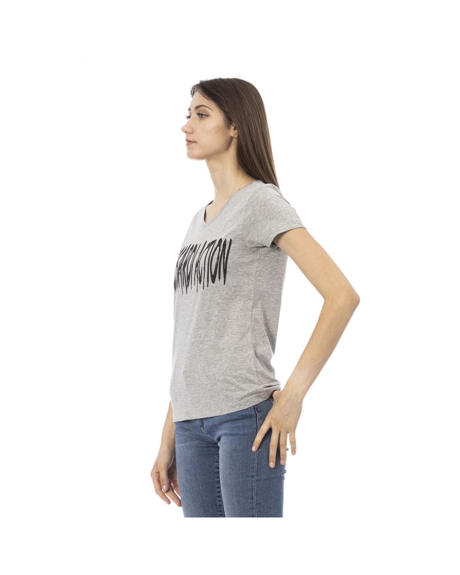 Trussardi Action Women's Elegant Gray V-Neck Tee with Chic Print - S