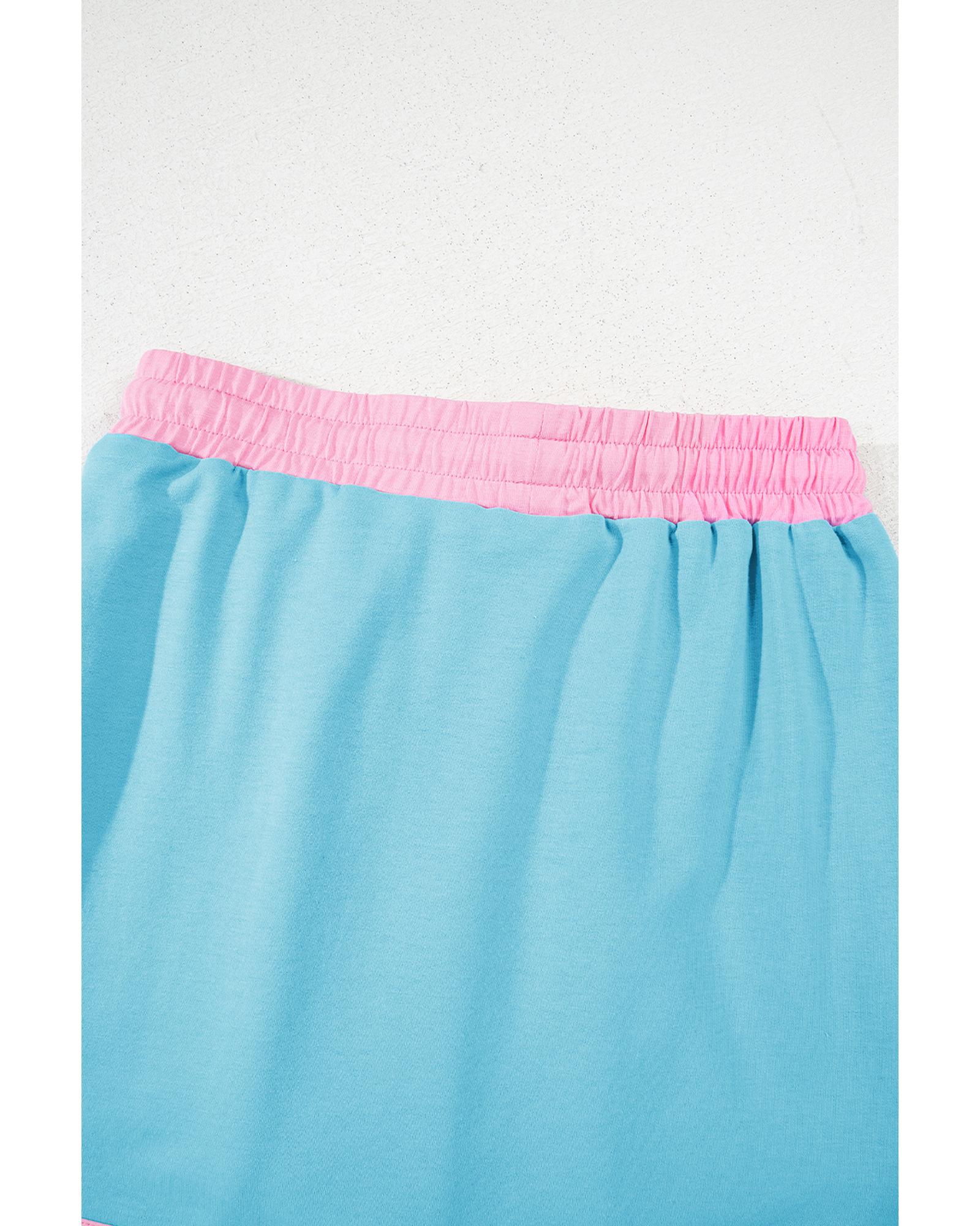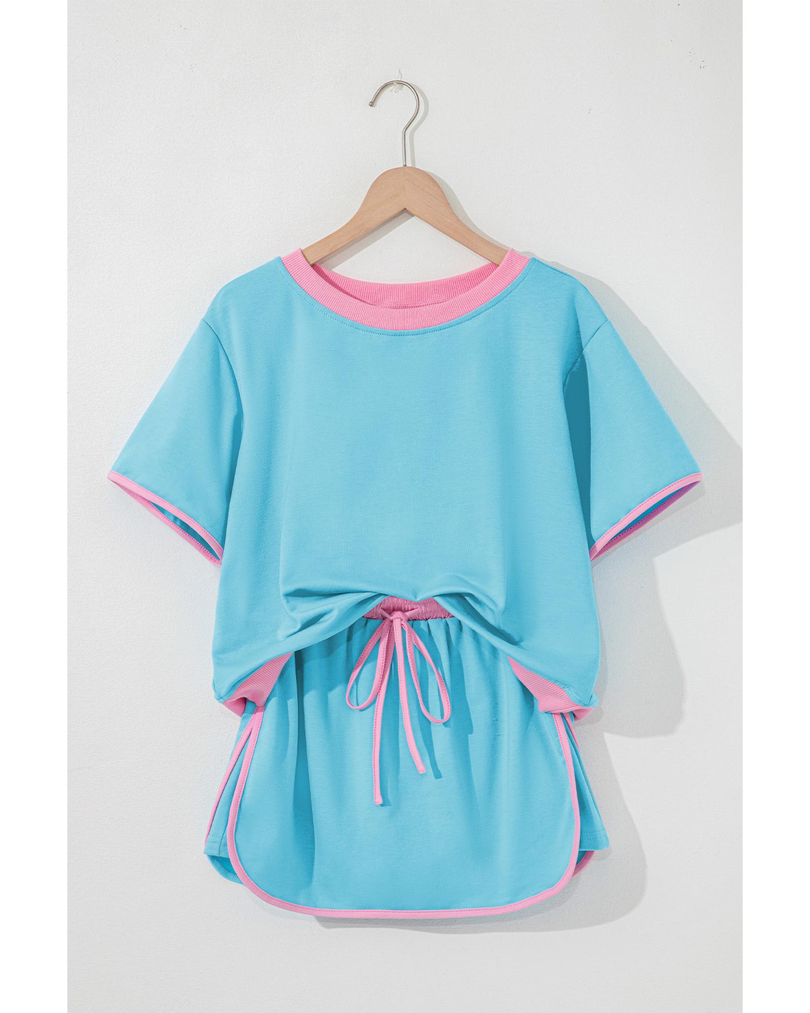 Turquoise Colorblock Edge Drop Shoulder T Shirt and Skirt 2Pcs Set – M