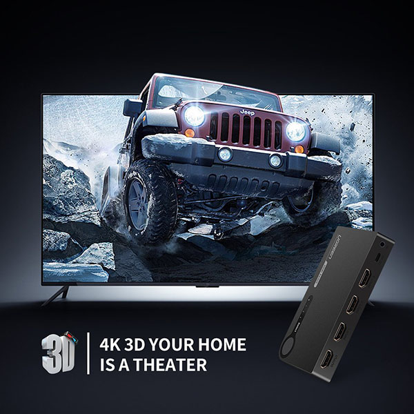 Ugreen 40234 HDMI 31 switcher provides a way to switch among multiple HDMI sources, like Laptop, HD-DVD, PS3, Xbox360 to a HDMI TV or display. It allows the switching of 3 inputs and maintains all signal components present within the encoded signal HDCP encryption. You could easily select from different programme sources via front panel push buttons or IR remote control without moving cables around.