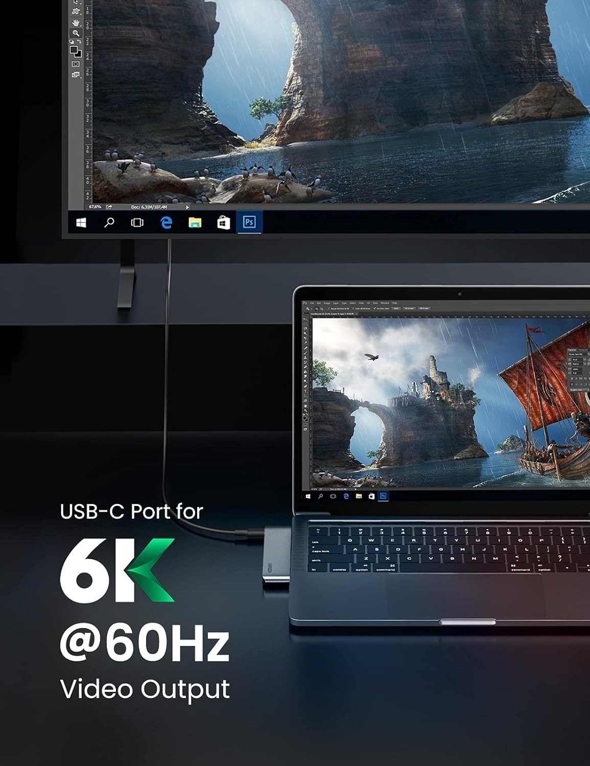UGREEN 60560 USB-C Hub for MacBook Aluminum Type-C Adapter with 3 USB 3.0 100W