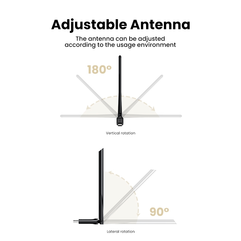 UGREEN USB Wifi Adapter for PC provides a stronger signal by the multi-angle adjustable antenna. When the signal is not stable enough, you can try to rotate and adjust the direction of the antenna for better performance and performance in different environments.