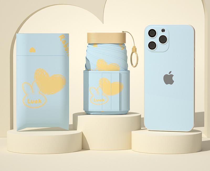 Ultra-Compact 7-Fold Folding Umbrella – UPF50+ Sun Protection & Portable Clip Design(light blue)