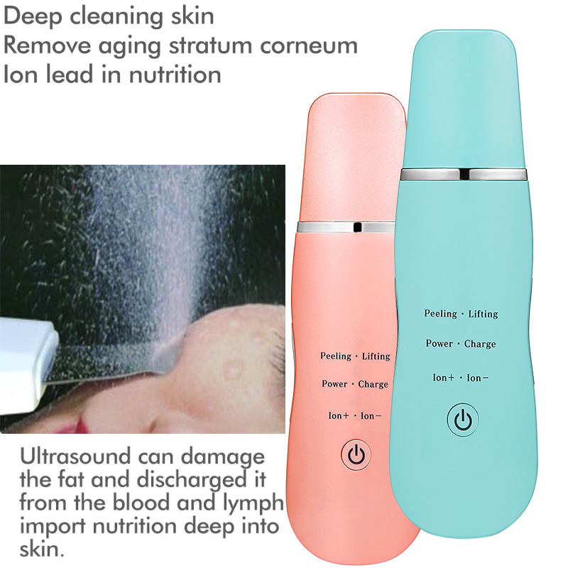 Rejuvenate your skin with our Ultrasonic Skin Scrubber, a versatile facial spatula designed for deep cleansing, exfoliation, lifting, and nutrient infusion. This device utilizes high-frequency ultrasonic vibrations to gently remove aging stratum corneum, dirt, bacteria, and keratin from pores without extending them. It features multiple modes including Peeling, Lifting, Ion+ (for deep cleansing/exporting impurities), and Ion- (for importing nutrition). The Ion+ mode helps to draw out impurities, while the Ion- mode enhances the absorption of skincare products by promoting the penetration of effective ingredients and improving metabolism. Ultrasound can also help improve skin texture and activate the skin. This ergonomic and portable device is your at-home solution for achieving a clearer, smoother, and more radiant complexion.