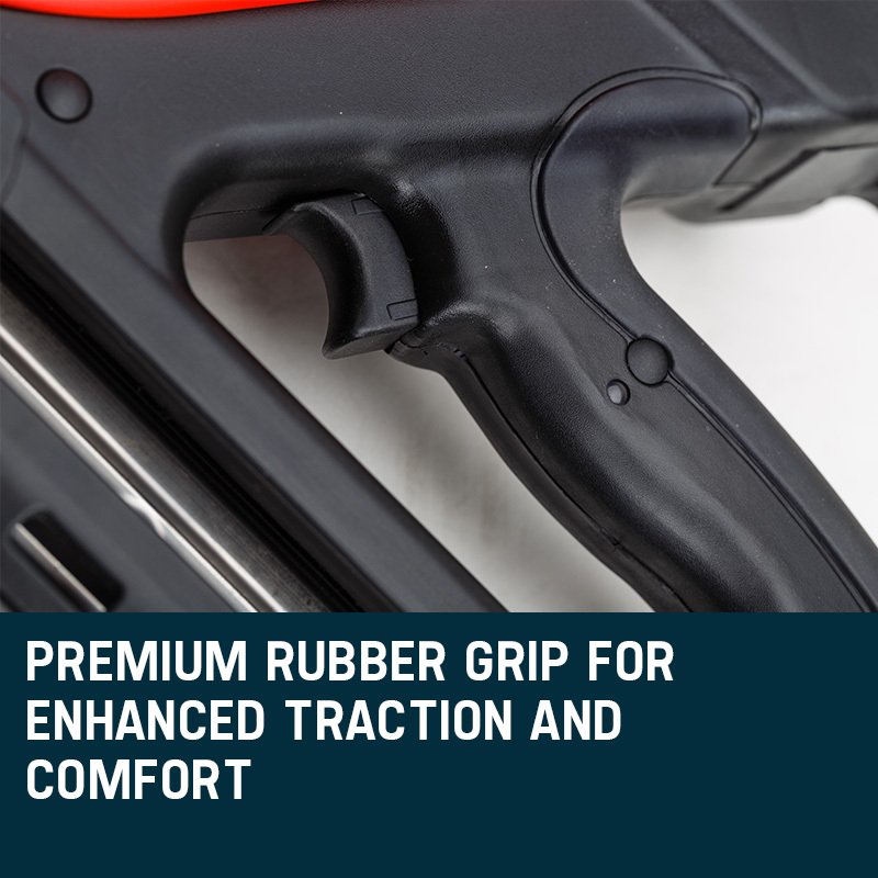 The LXG3000 features Full Sequential Actuation for maximum speed making it the ultimate choice for all types of timber and tasks, including Framing, Decking, Flooring, Crate/Pallet Assembly and much more. The unique quick-load magazine makes reloading easier, with more transparency to when you’re running low on nails. Its generous 48 nail capacity also contributes to greater productivity with less load intermission. Its ergonomically designed for prolonged use with a comfortable elastomer grip and 360 variable exhaust port. Importantly, the LXG3000 accepts industry standard framing fuel cells for added convenience.