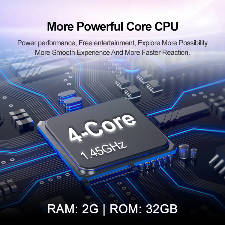 • Powerful Core Performance: Equipped with a 4-core 1.45GHz CPU, 2GB RAM, and 32GB ROM for smooth operation and fast reaction times.