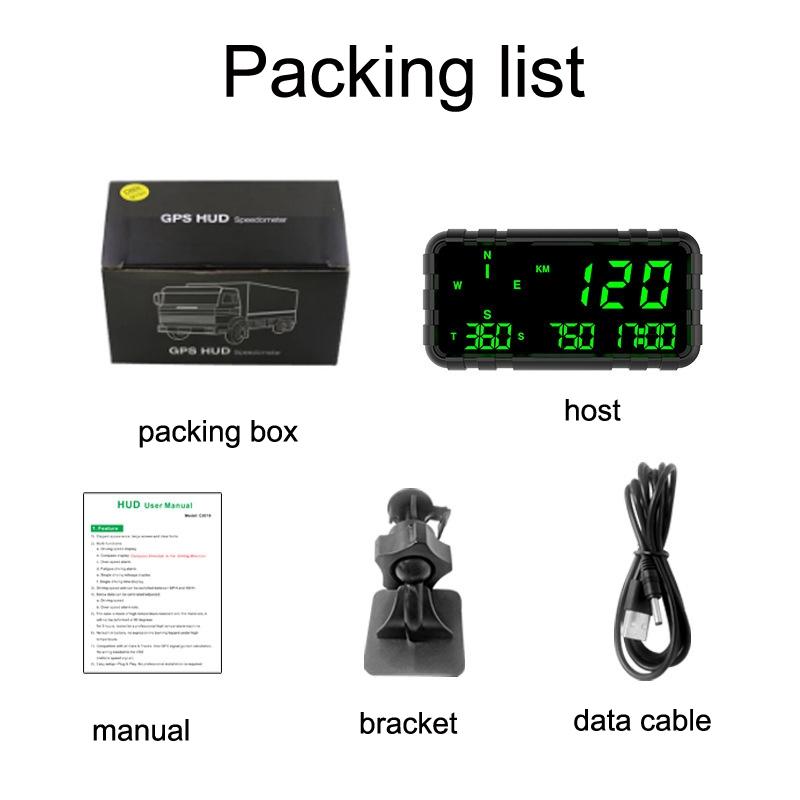 • 1 x Universal Gps Head Up Display For Cars Speed Mileage Compass Black