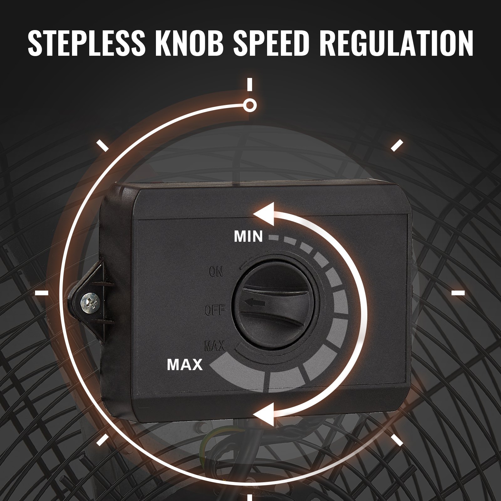 This industrial fan makes airflow adjustment incredibly easy with its stepless speed control design. Just a gentle turn allows you to customize the wind strength, ensuring a refreshing and comfortable experience!