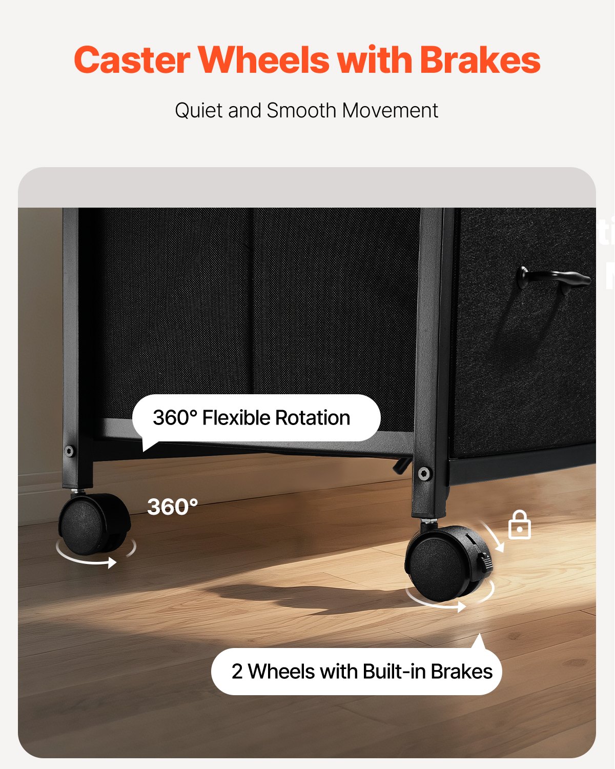The cabinet is equipped with four swivel casters at the bottom, allowing you to easily move it to any location, even when it’s fully loaded with files. Two of the casters have a locking mechanism, so you can secure the cabinet in place after moving it, ensuring stability
