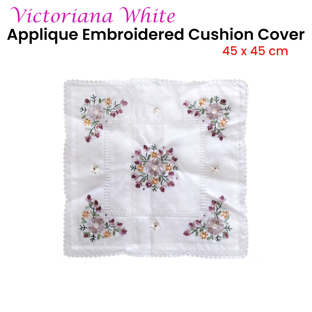 Victoriana White Applique Embroidered Cushion Cover 45 x 45 cm