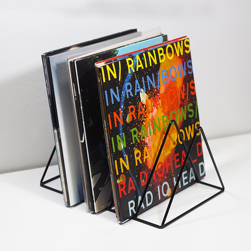 -SAFE STORAGE: Our record holder stand protects against misshaping and damaging when stacking on top of each other; Made of robust iron it offers secure, protective, and practical way to keep your albums healthy.