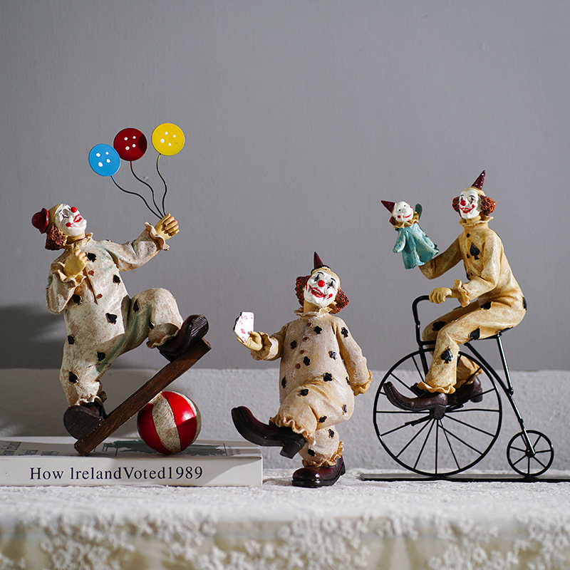 Vintage Circus Clown Figurines – Retro Balloon and Bicycle Ornaments
