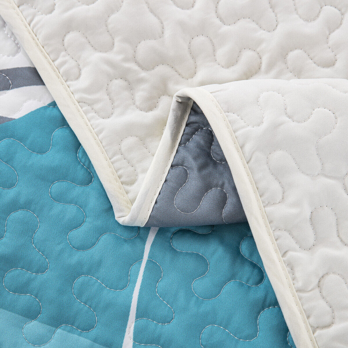 Vintage Delicate Teal floaral Pattern 3 Pc Bedspread & Pillow Cover Set