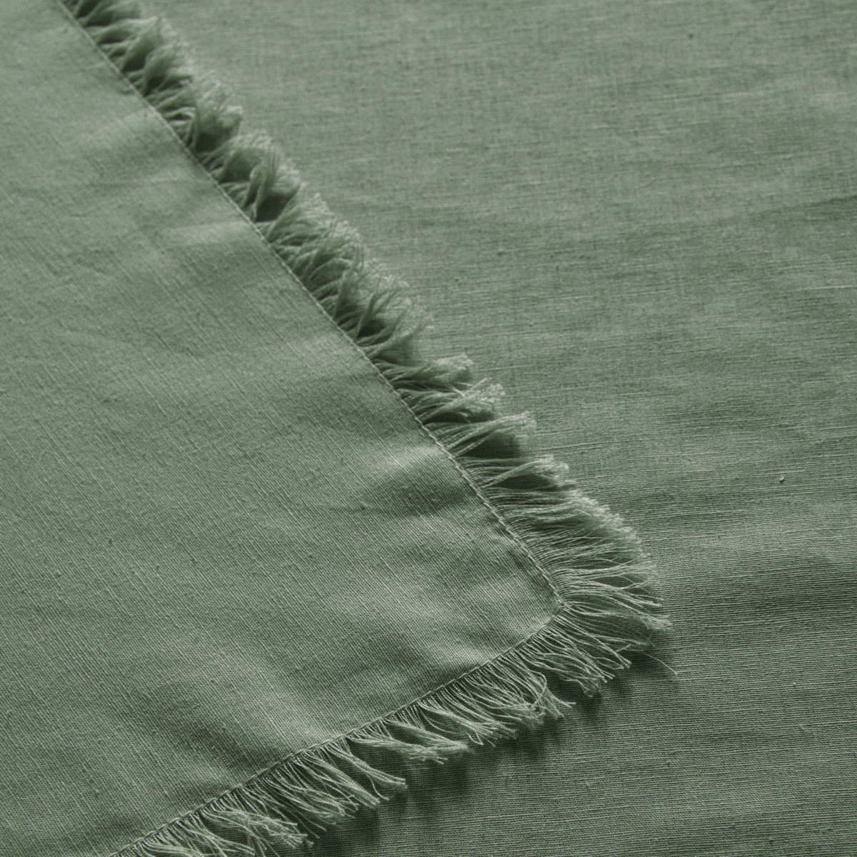 Vintage Design Homewares Gypsy Green Fringed Washed Linen Cotton Tablecloth 150cm x 230cm