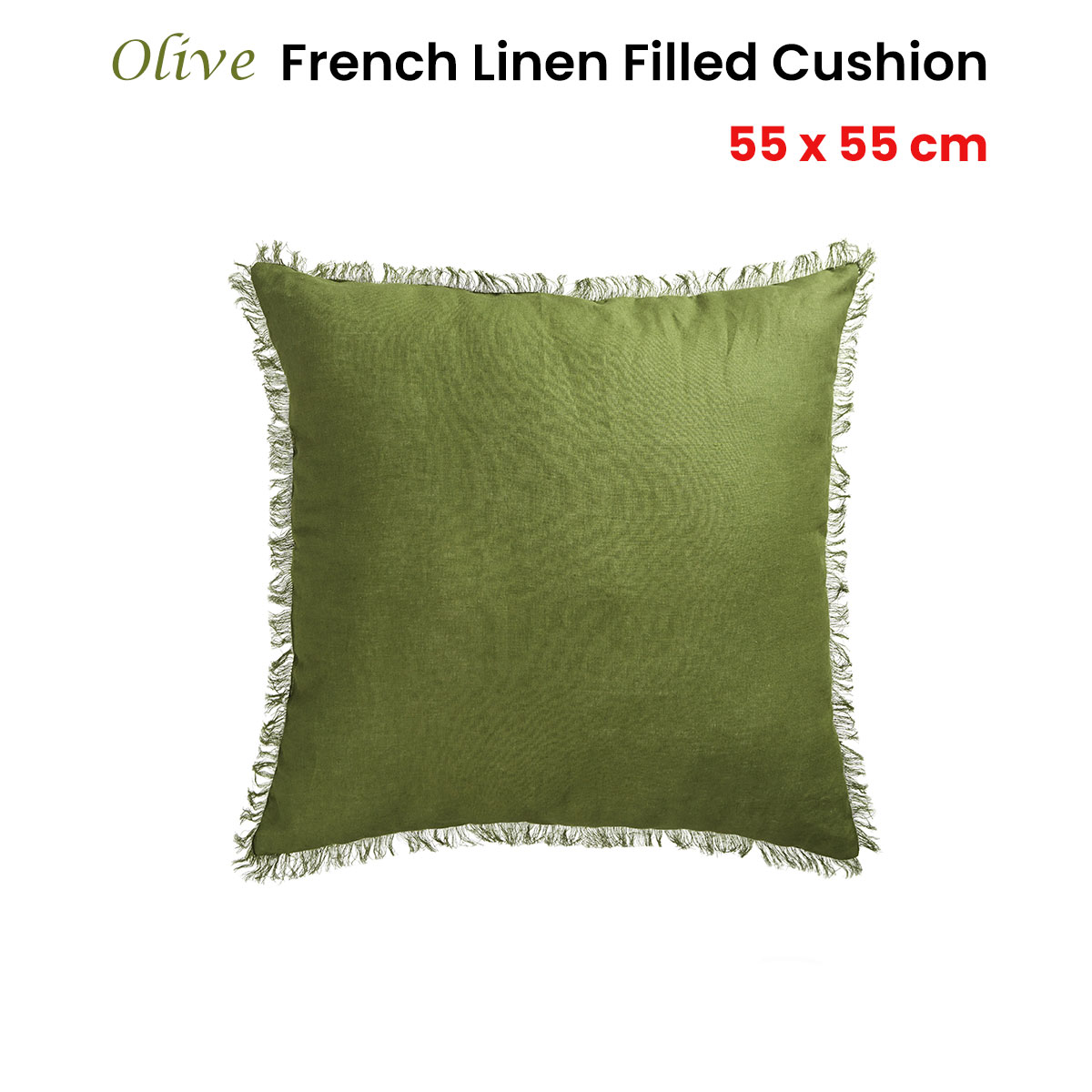 Vintage Design Homewares Olive French Linen Filled Cushion Square – 55cm x 55cm