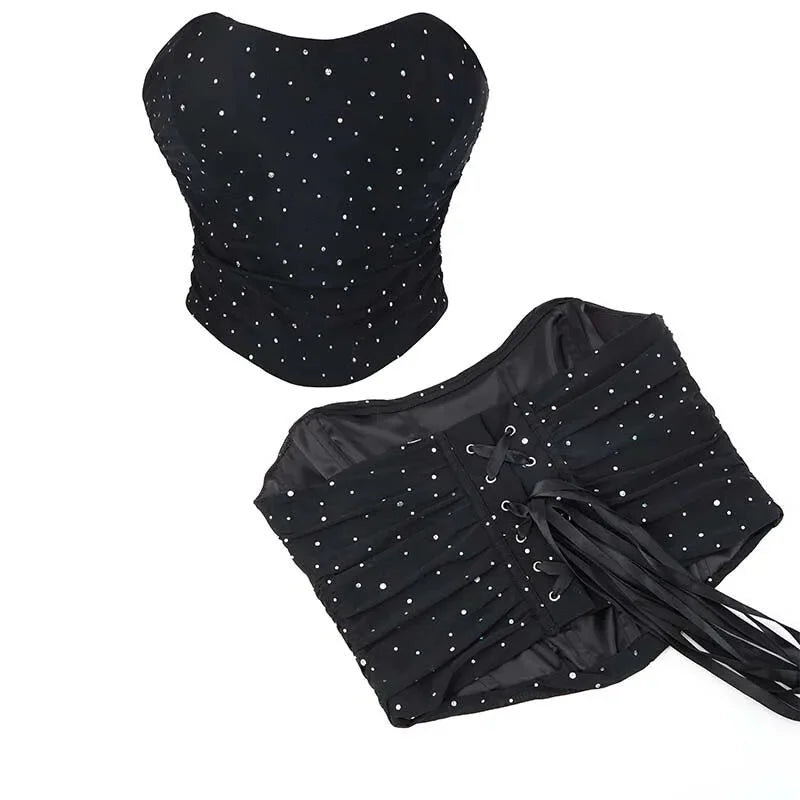 • 1 x Vintage Lace-Up Gothic Corset Top With Boning And Mesh Back Sparkling Rhinestone Sequins And Bustier Design