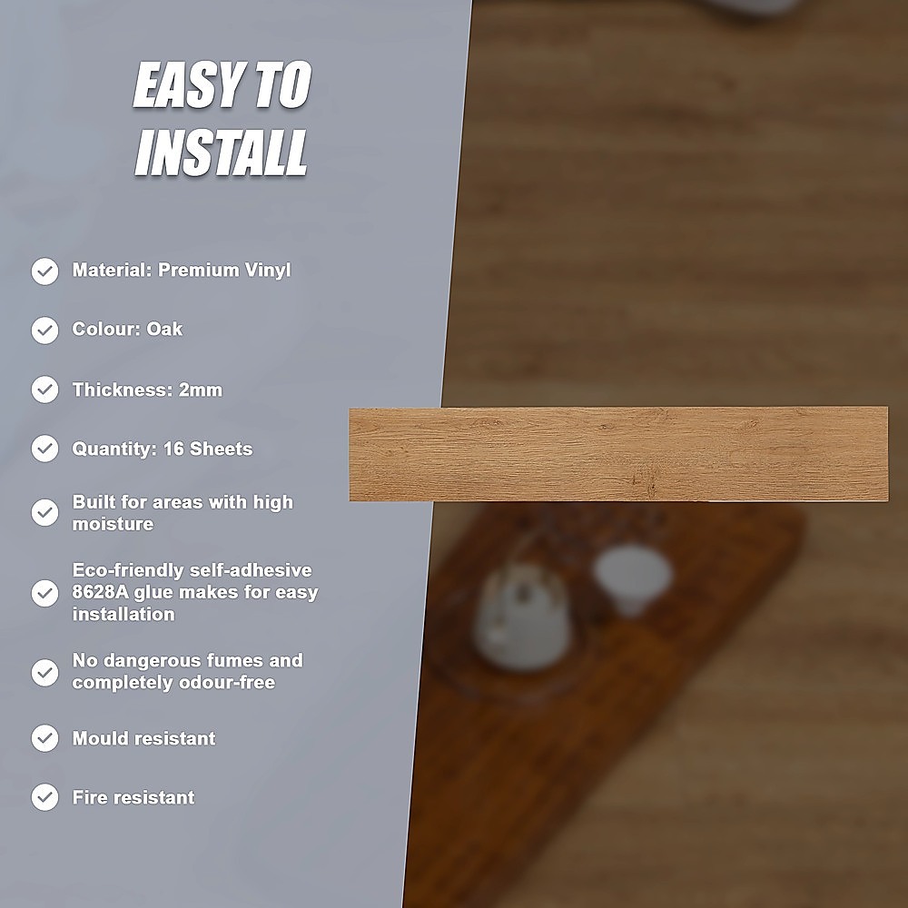 Vinyl Floor Tiles Self Adhesive Flooring Oak Wood Grain 16 Pack 2.3SQM