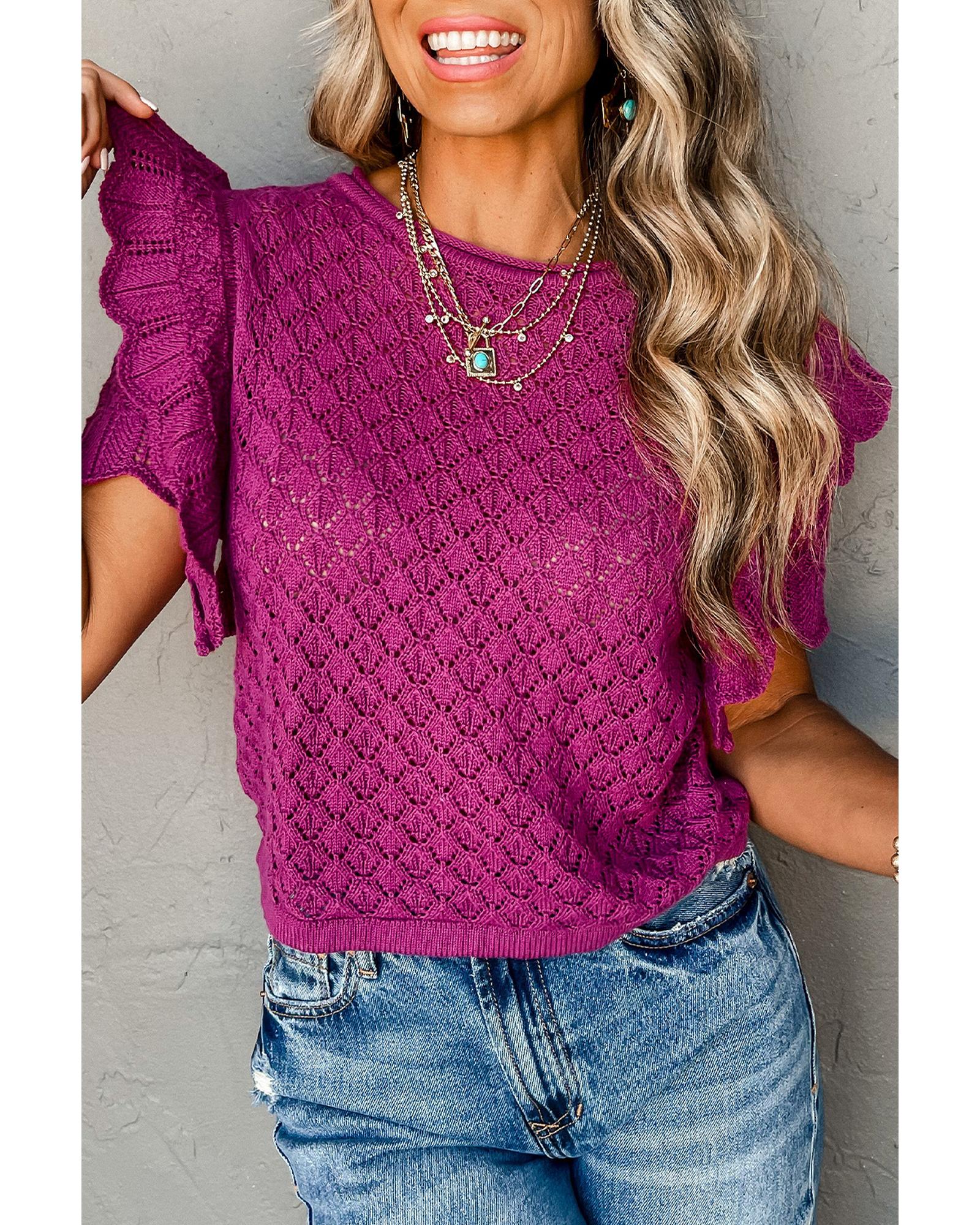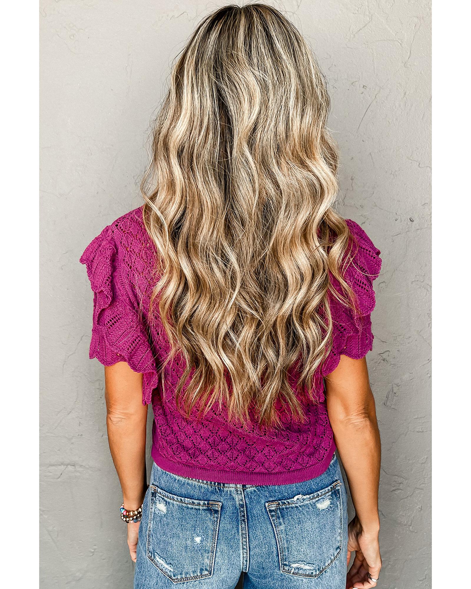 - Violet Ruffled Short Sleeve Textured Knit Sweater