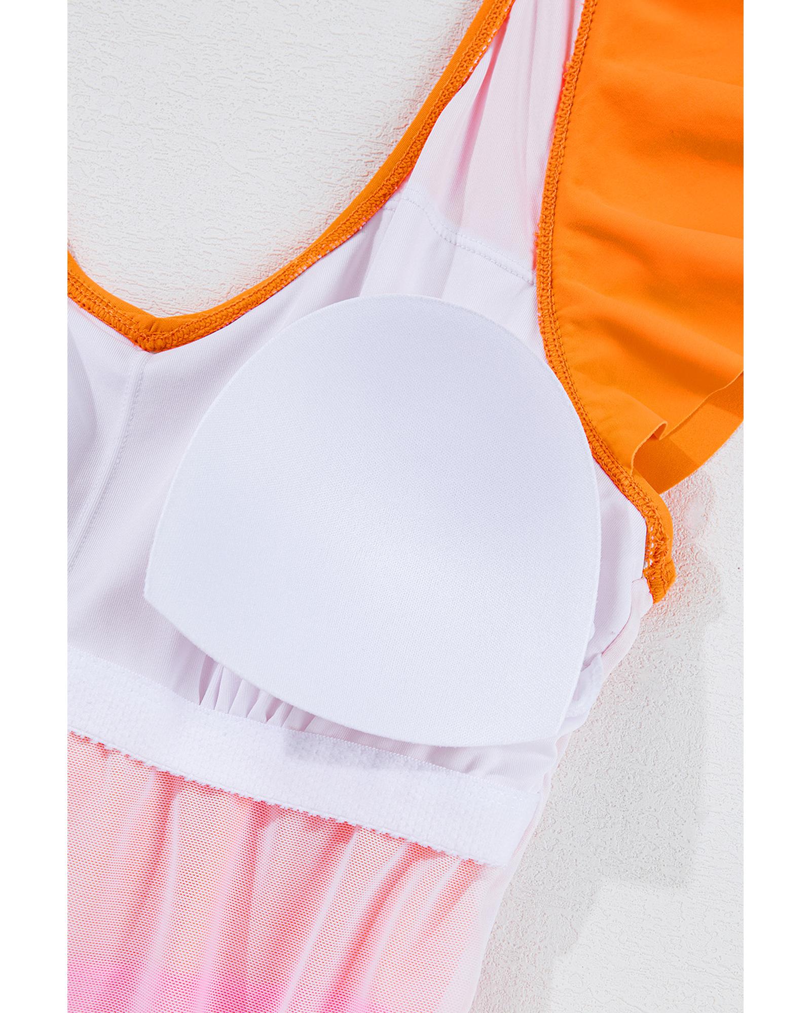 Vitality Orange Color Block Ruffled Knotted Backless One Piece Swimsuit – L