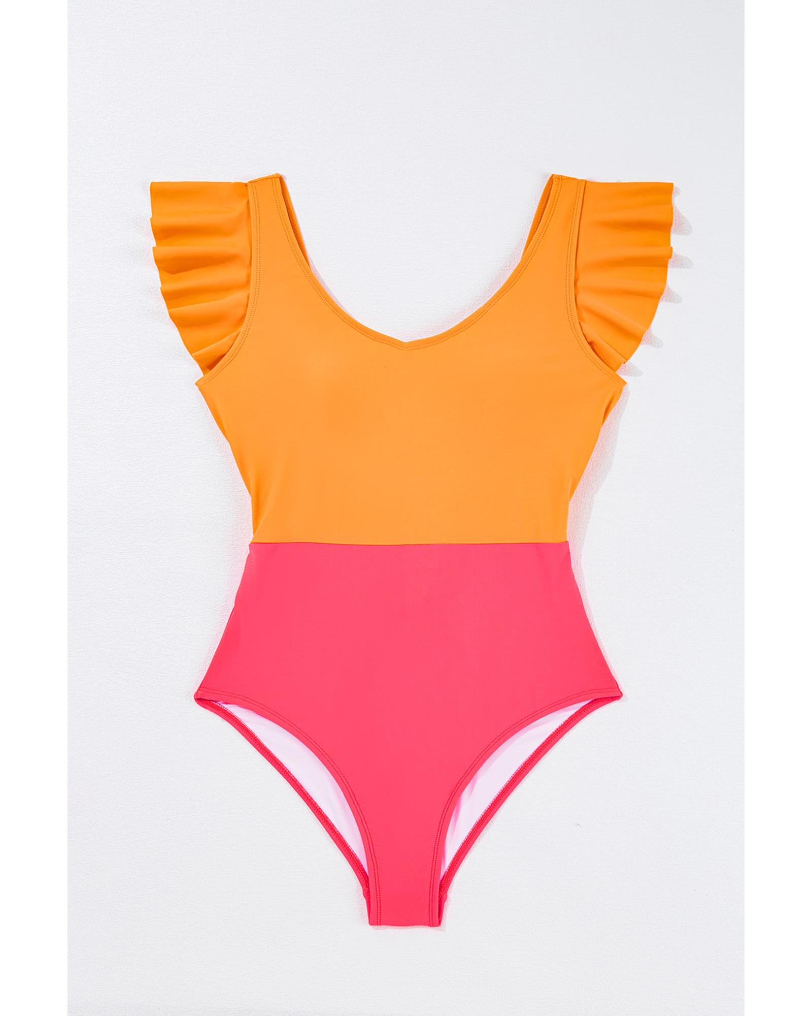 Vitality Orange Color Block Ruffled Knotted Backless One Piece Swimsuit – M