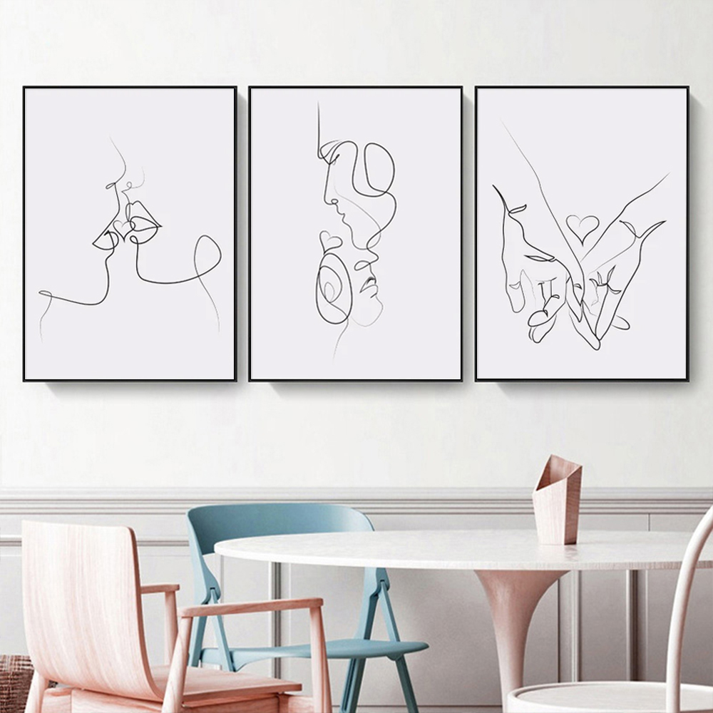 Wall Art 80cmx120cm Couples 3 Sets Black Frame Canvas