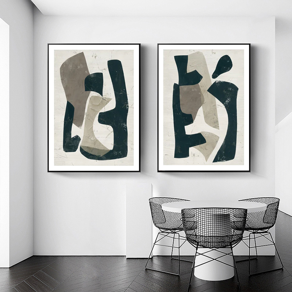 Wall Art 90cmx135cm Abstract Puzzle 2 Sets Black Frame Canvas