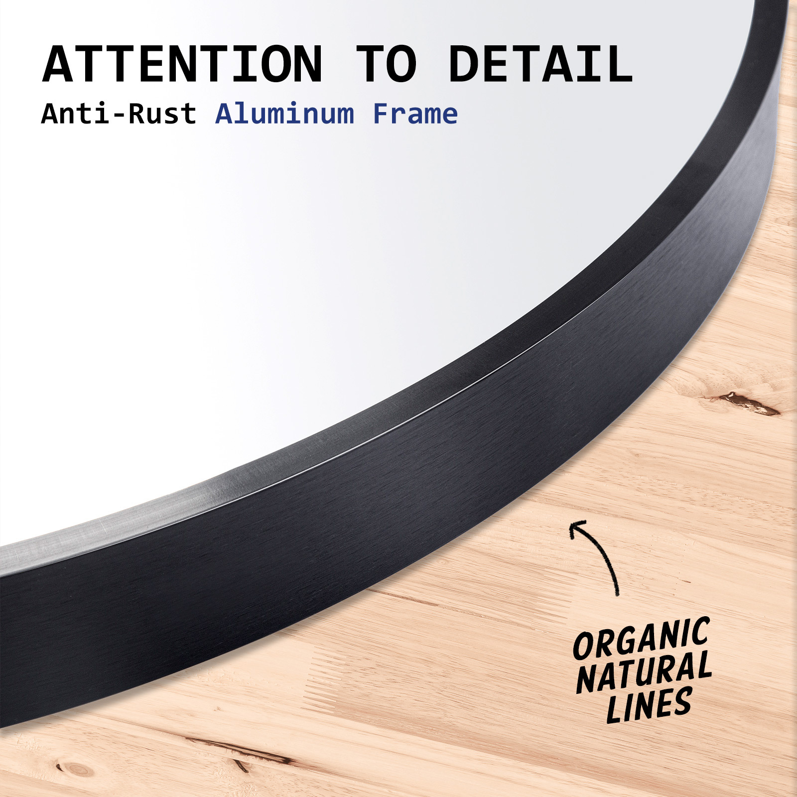Wall Mirror Round Aluminum Frame Bathroom 70cm BLACK