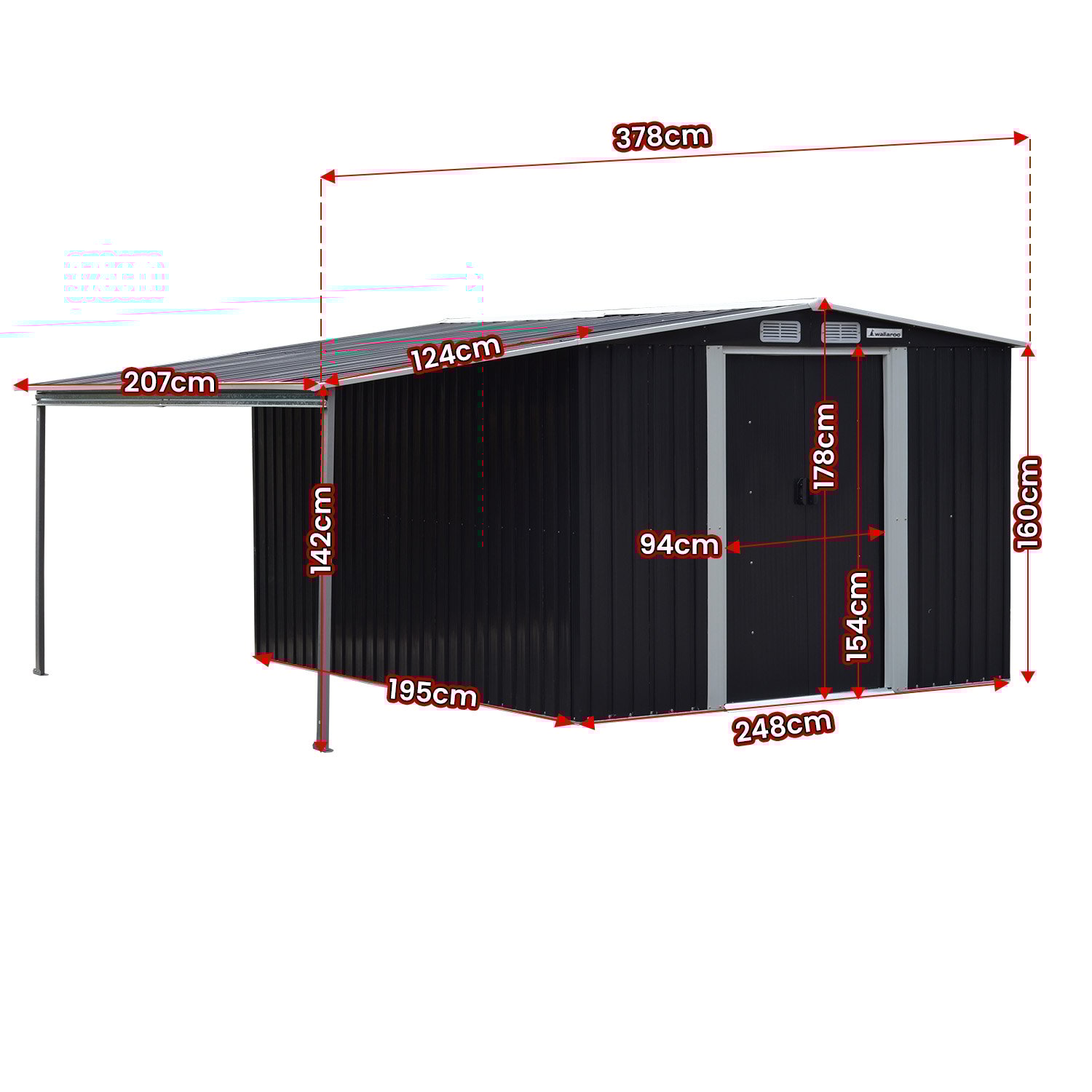 - Shed Dimensions (W x H x D): 257 x 178 x 205cm