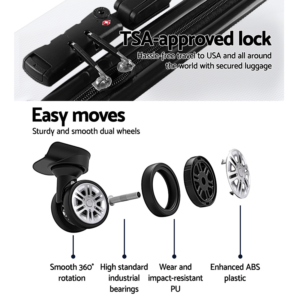 Making sure your belongings are secured during the entire journey, enjoy a stress-free holiday or business trip. Besides a durable hard shell, having smooth dual wheels for great mobility and secured TSA lock for extra security are a plus for having a luggage bag.