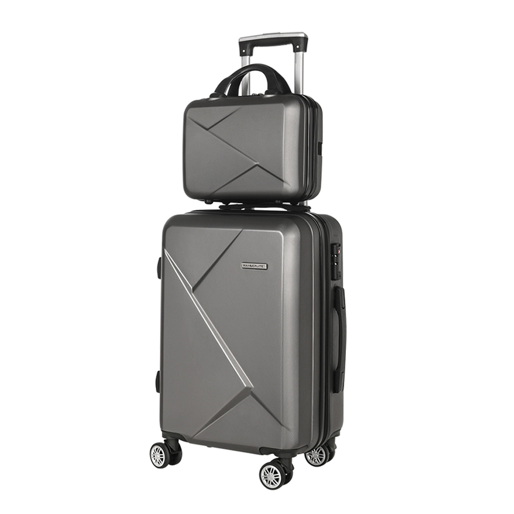Wanderlite 2Set 20 Inch Luggage Case with 12 Inch Handheld Luggage Box Hard Shell Travel Suitcase TSA Lock Dark Grey