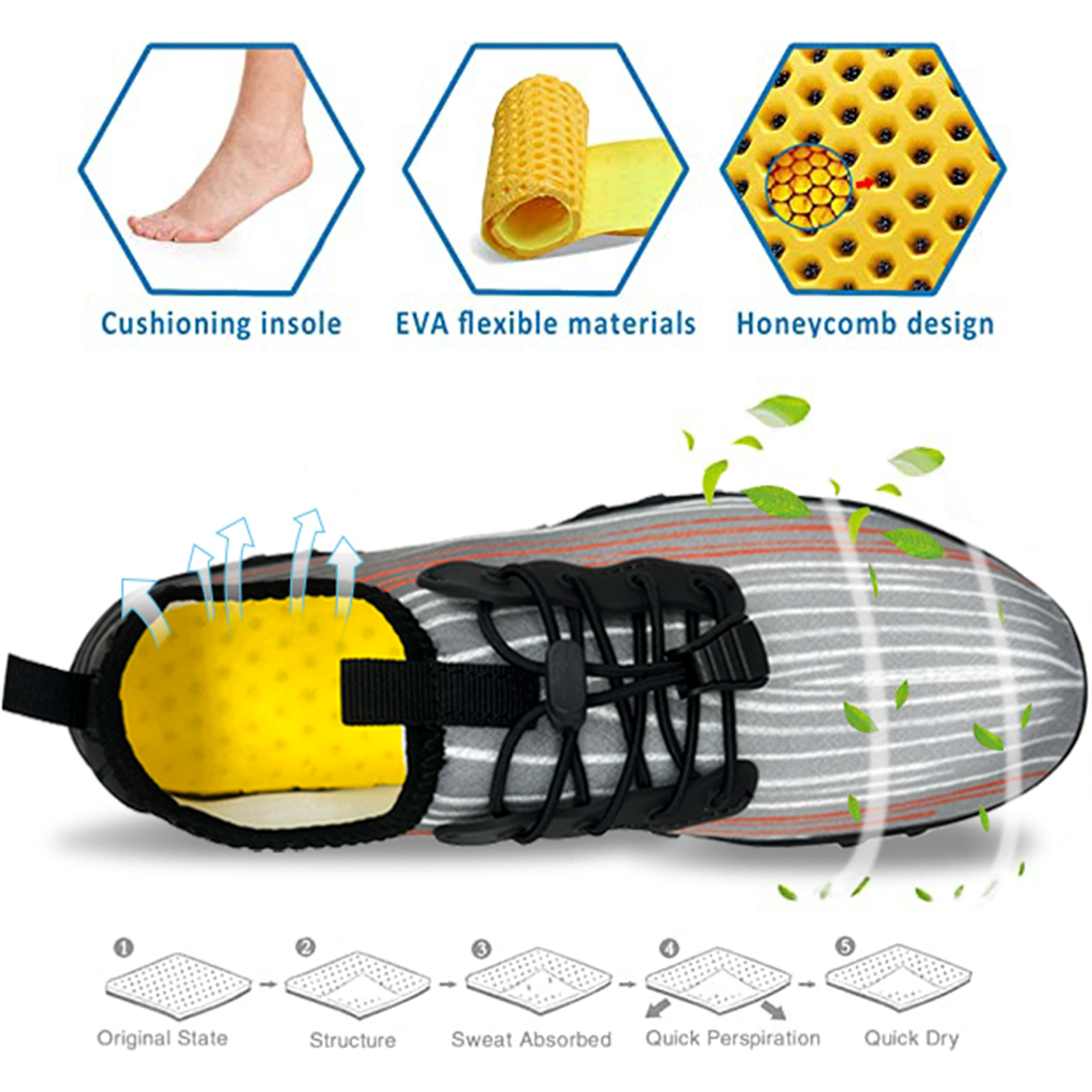 BREATHABLE ELASTIC MATERIAL:The upper is made of stretch breathable elastic material, which is soft, comfortable, skin friendly, which feels like you are only wearing socks. The shoe body is super lightweight and flexible, and can be twisted at will.