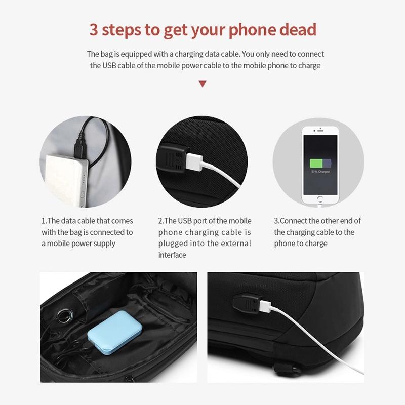 • 1 x Waterproof Anti Theft Chest Bag With Usb Port Men Outdoor Messenger Bag Dark Blue