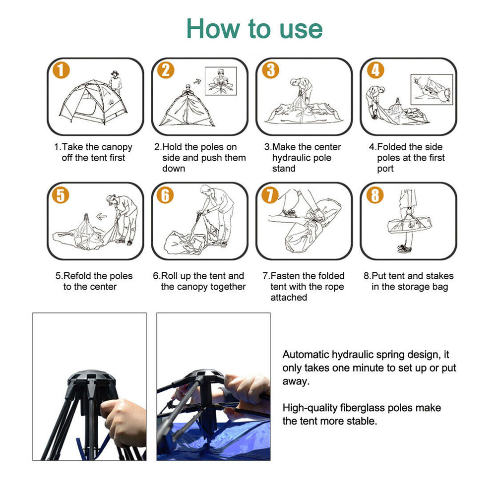 Automatic Setup: Enjoy a hassle-free camping experience with the automatic setup feature. The tent quickly unfolds, making it easy to set up for your outdoor adventures.
