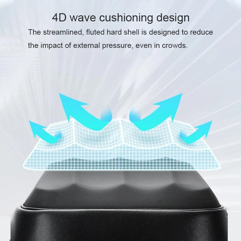 • 4D three-dimensional corrugated buffer design and streamlined grooved hard shell design can effectively slow down impacts caused by external pressure.
