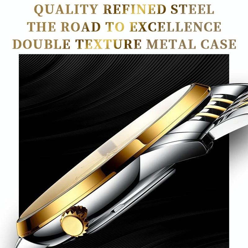 Waterproof Business Men Quartz Watch with Butterfly Buckle and Luminous Dial – 30m – Full-Gold-Black-Gold Nail