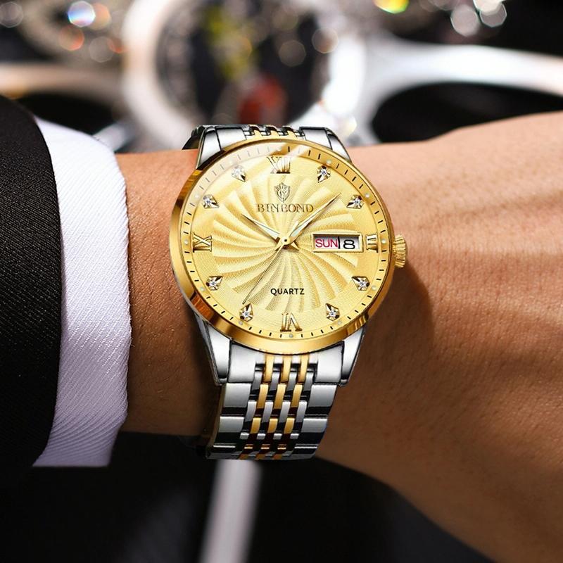 Waterproof Business Men Quartz Watch with Butterfly Buckle and Luminous Dial – 30m – Inter-Gold-White