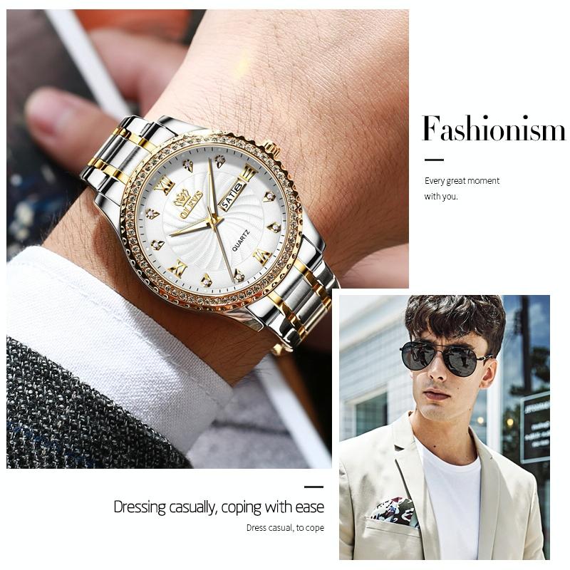 • 1 x 5565 Men Fashion Waterproof Stainless Steel Strap Diamond Quartz Watch