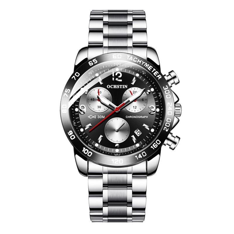 Waterproof Luminous Men Watch with Steel Strap – Silver Black