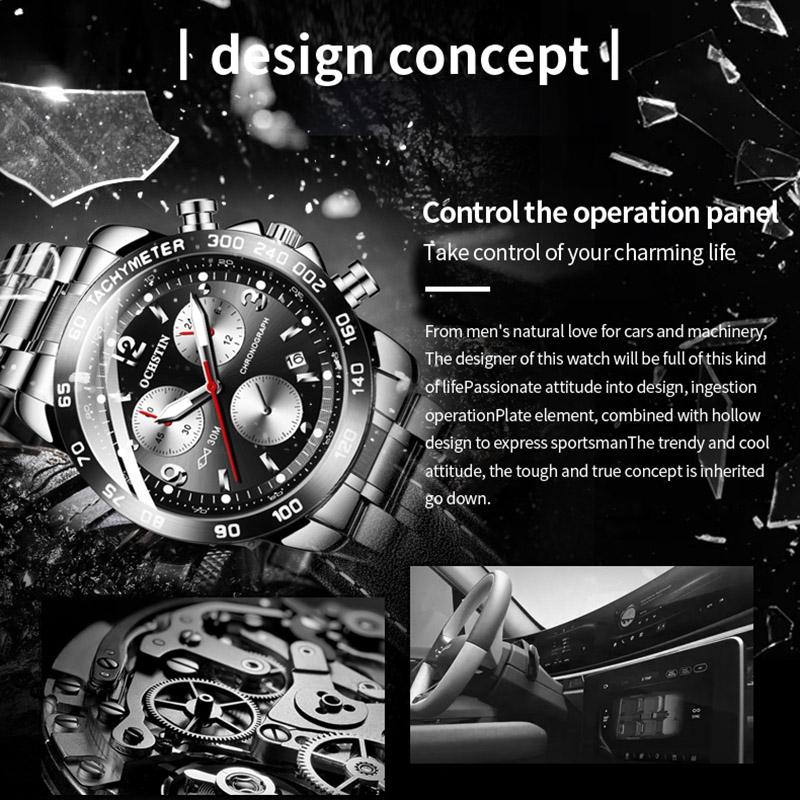 • 1 x 6123B Multifunctional Quartz Waterproof Luminous Steel Strap Men Watch