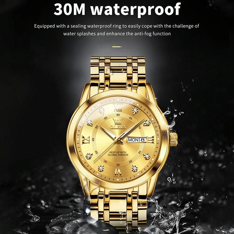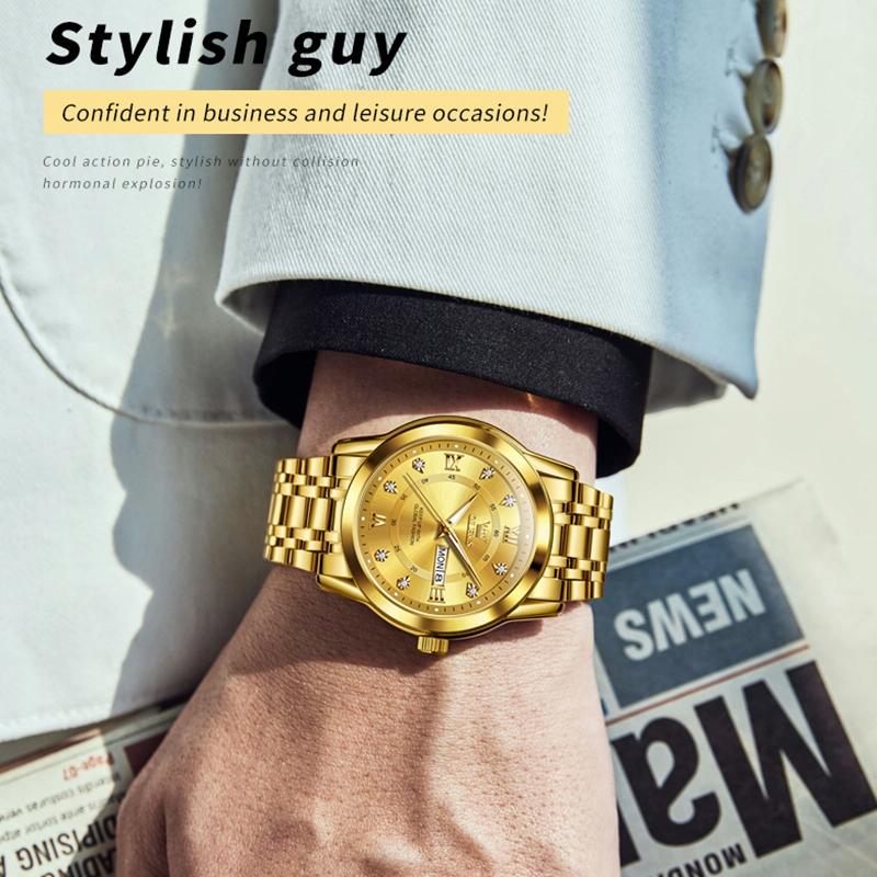 Waterproof Luminous Quartz Watch for Men – Business Style – Blue + Gold