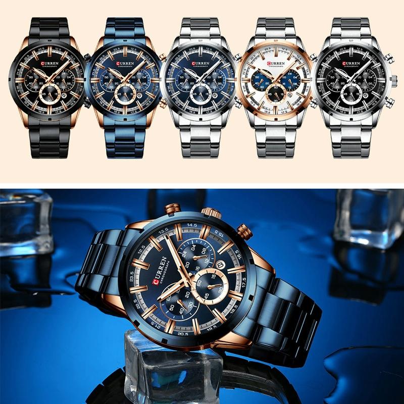 • 1 x M8355 Men Waterproof Quartz Six Stitches Calendar Steel Belt Business Watch