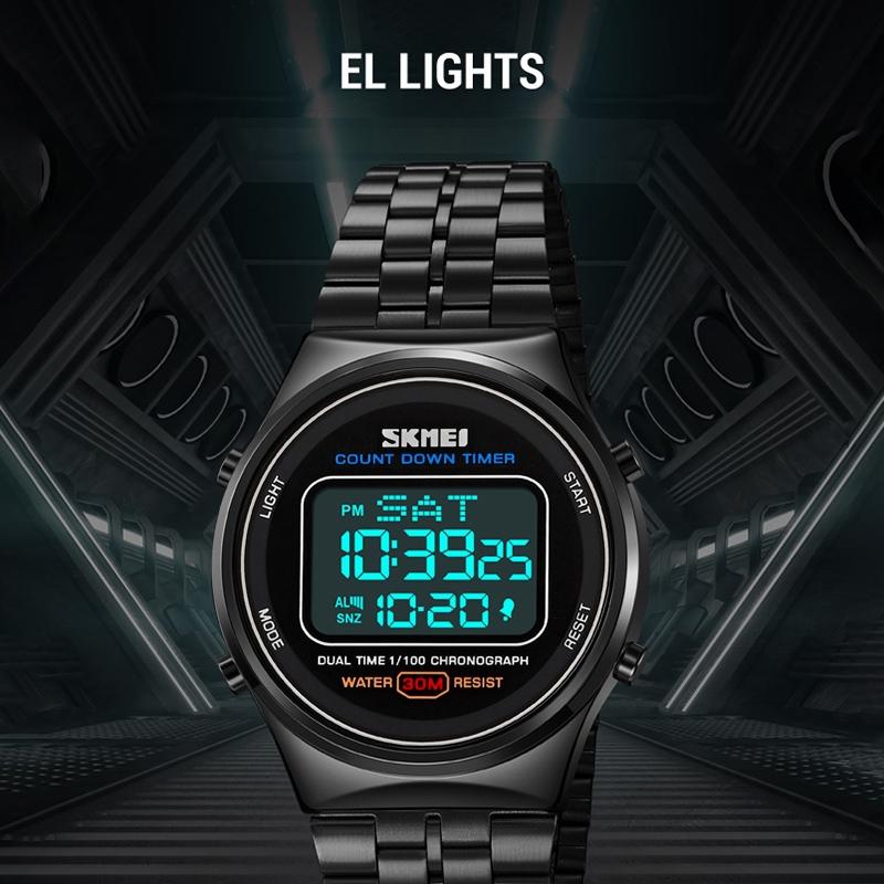 • 1 x 1882 Multifunctional Men 30M Waterproof Luminous Stainless Steel Digital Wrist Watch