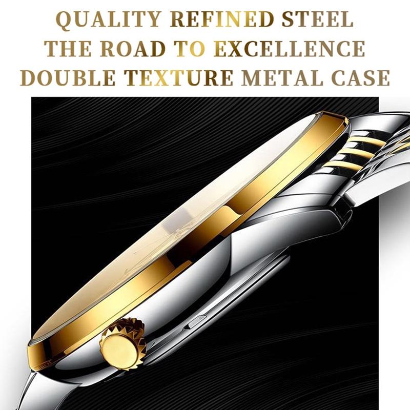 Waterproof Quartz Men Watch with Luminous Butterfly Buckle and Steel Belt – 30m – White Steel-Black