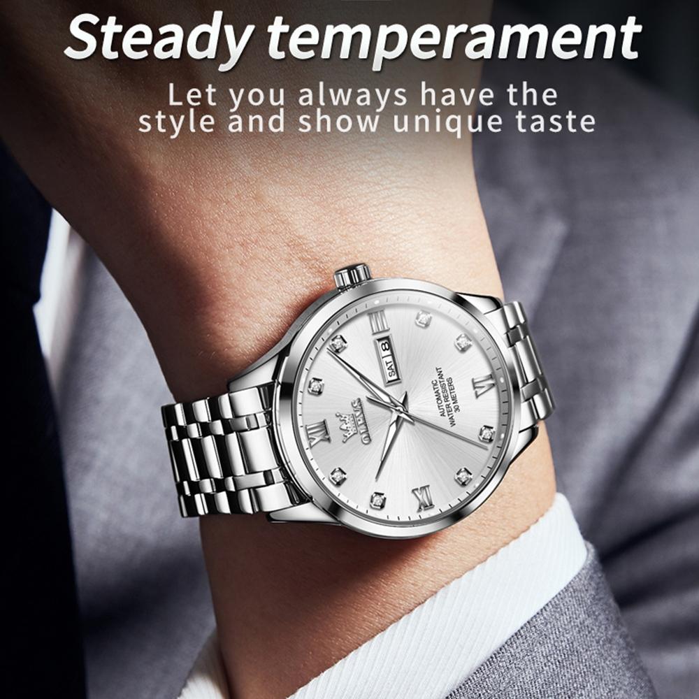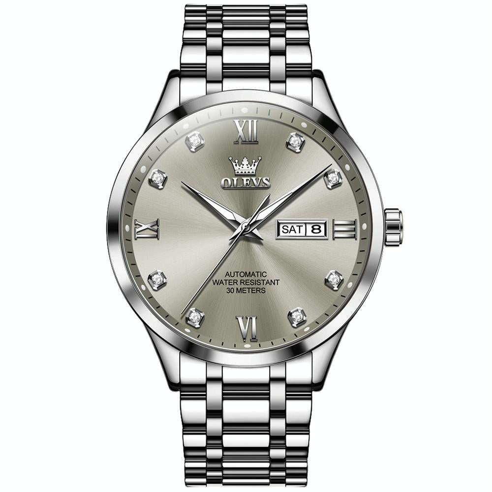 Waterproof Quartz Watch with Diamond Roman Scale for Men – Grey + Silver