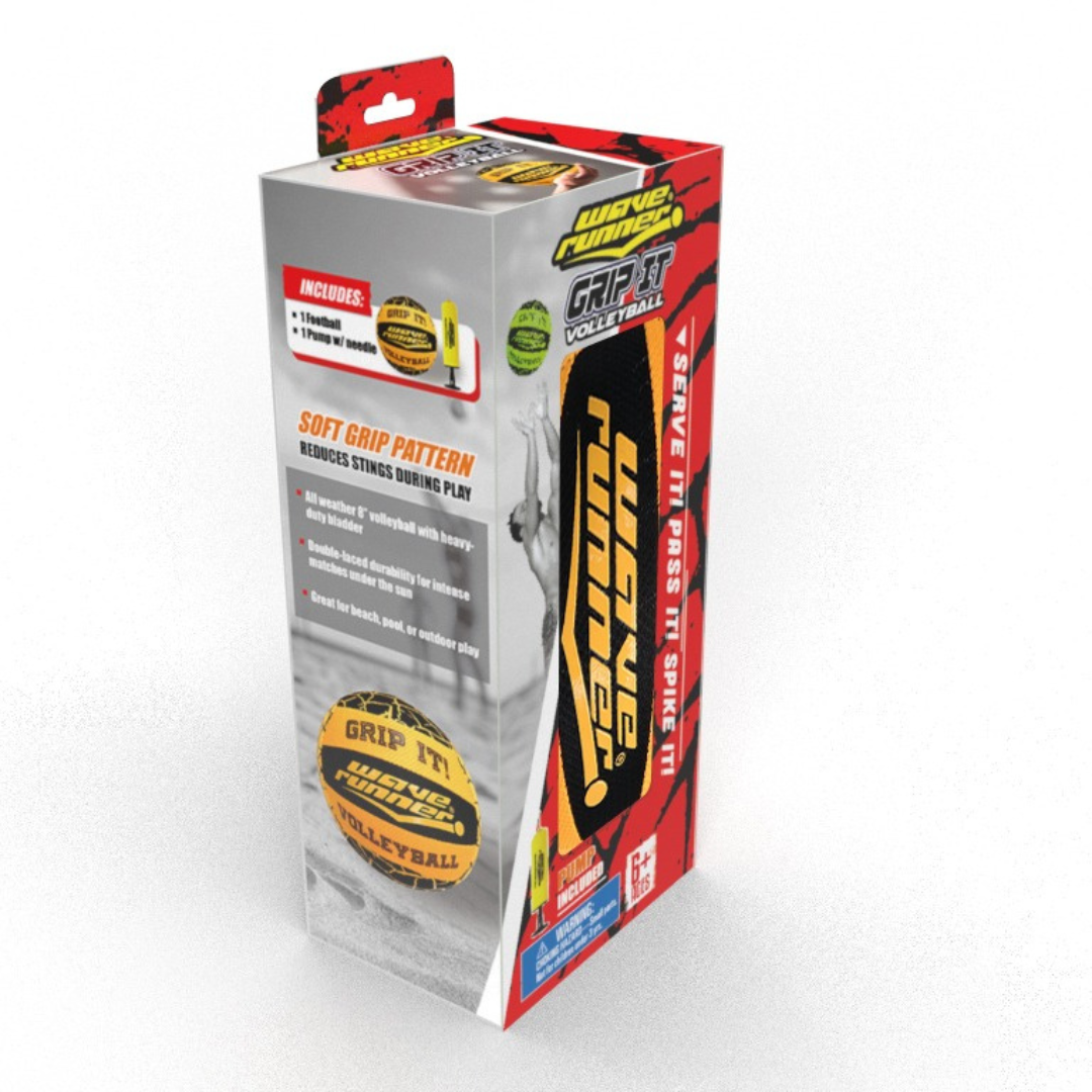 Wave Runner Grip It Volleyball 20cm with pump (deflated) Asst – WRV800-PUM The waterproof 20.3cm volleyball is perfect for playing in or out of the water.Strong grip material and soft texture provide great control when bumping or spiking the ball.Take it to the beach, pool, or park for endless hours of fun! Includes:1 x BallPlease note: This is an assorted item. Item will be selected at random