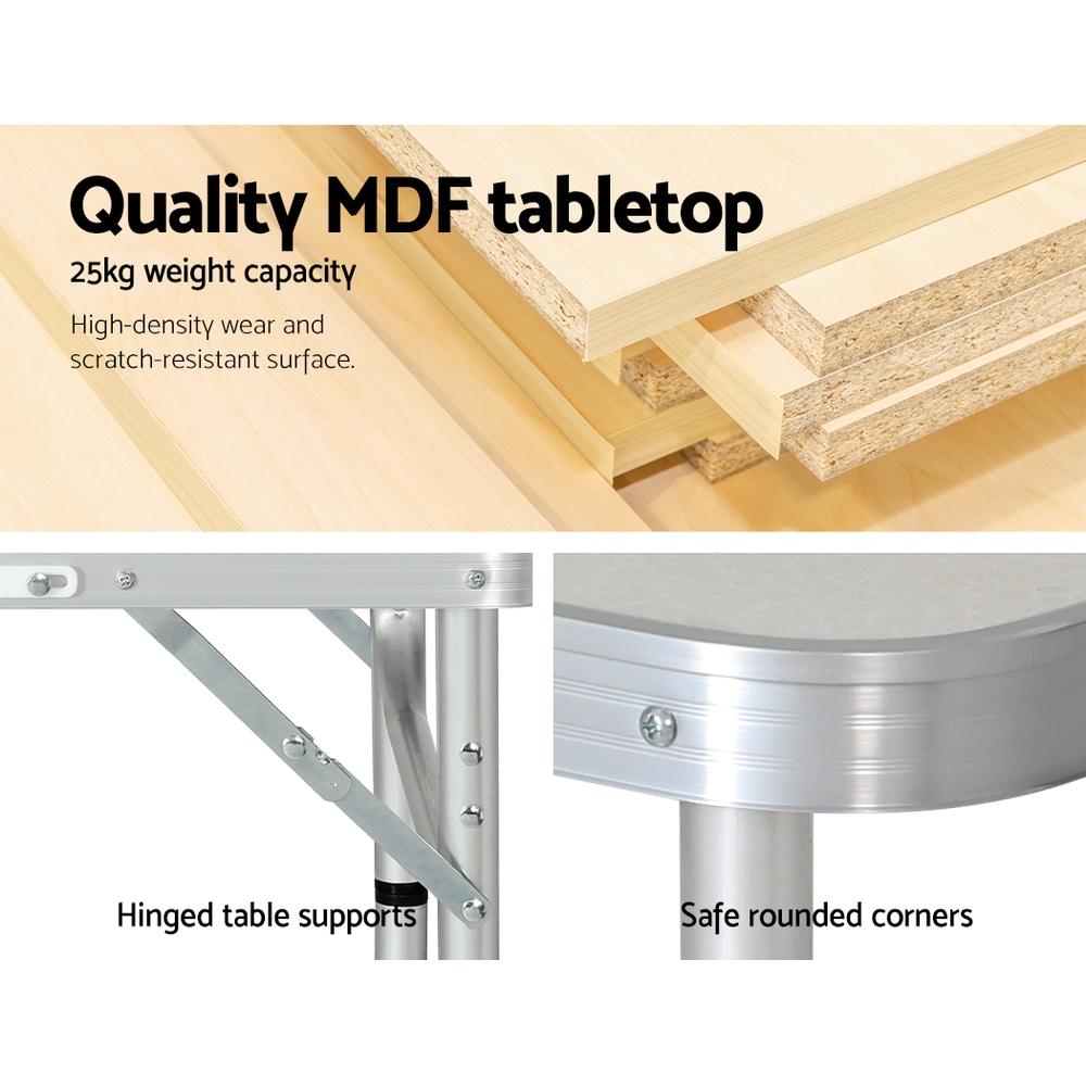 Weisshorn Folding Camping Table 60CM Adjustable Portable Outdoor Picnic Desk