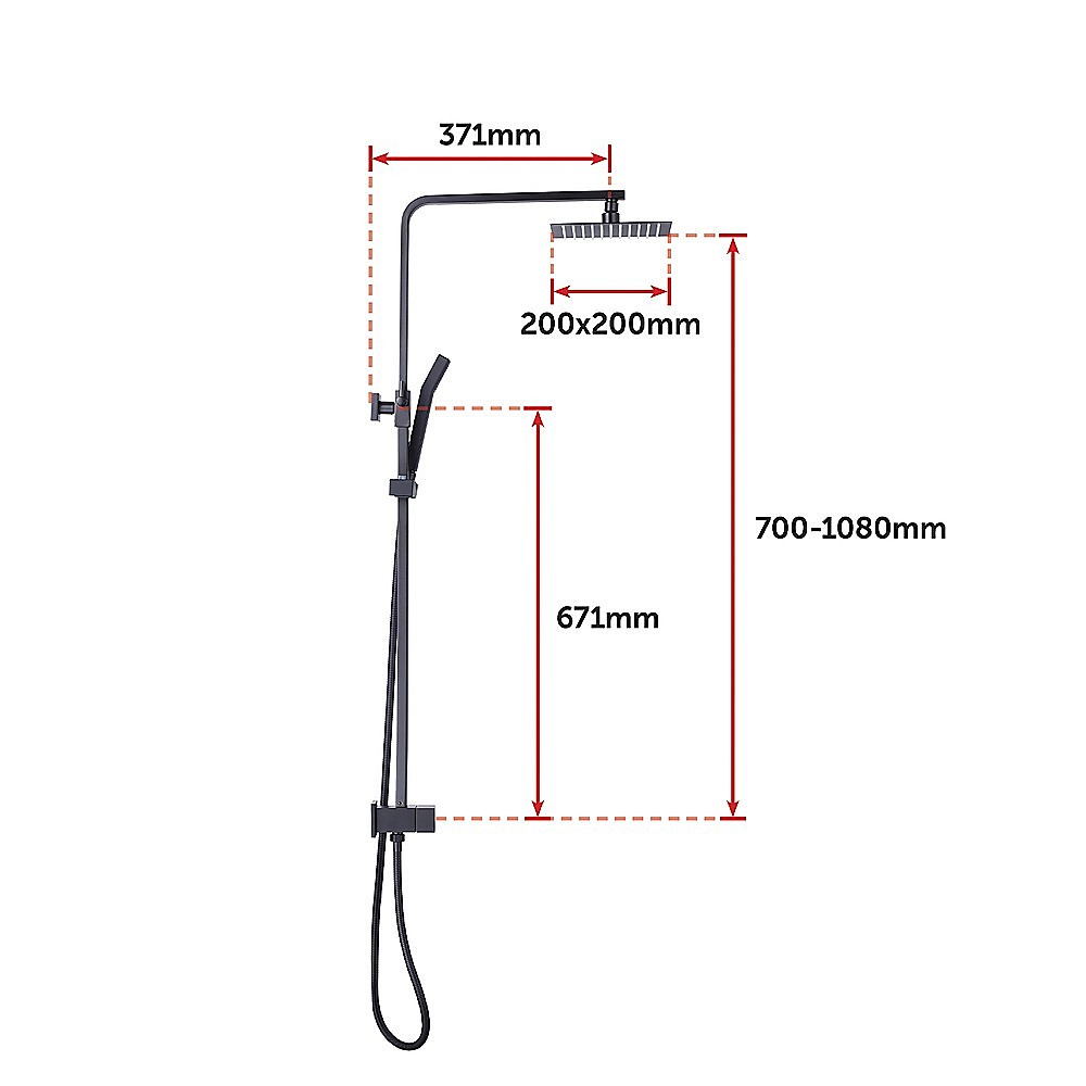- Overhead shower head size: 20cm x 20cm